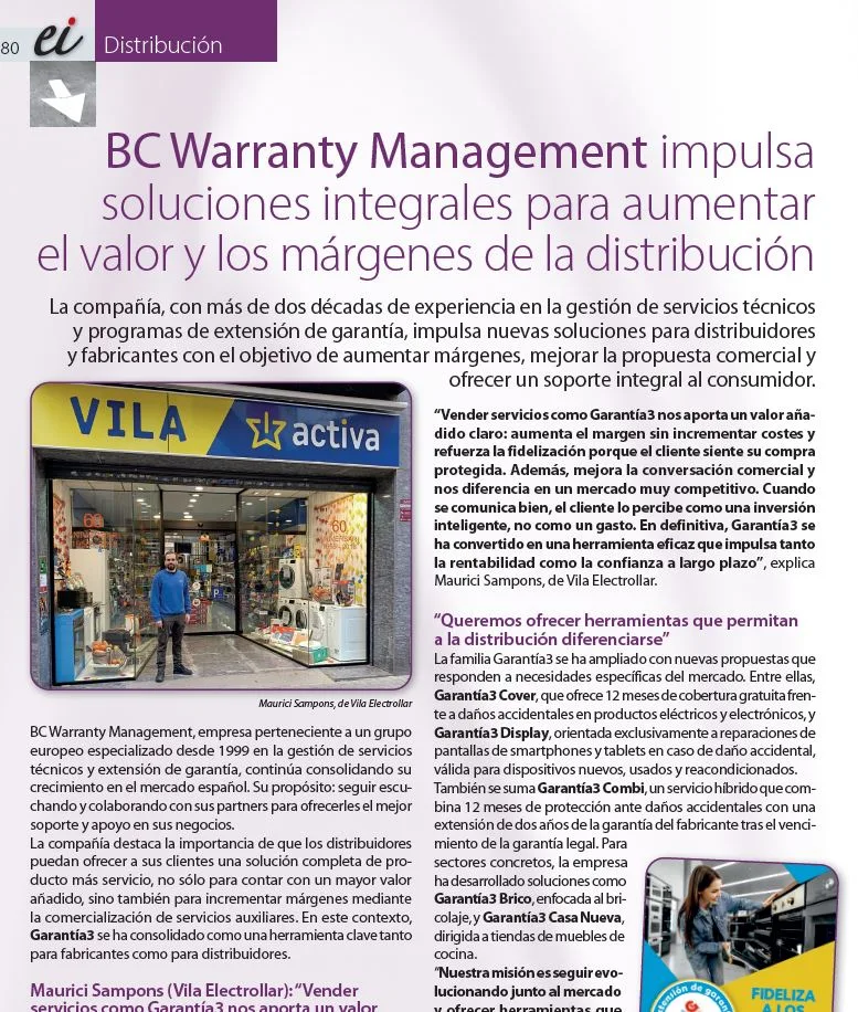 Ofrecer los servicios de Garantía3 aporta margen y fidelización adicionales BC Warranty Management es una empresa partner de un grupo europeo especializado -desde 1999- en la gestión de servicios técnicos y extensión de garantía. Entre ellos, destaca Garantía3, que extiende la garantía del fabricante por 2 o 3 años más. Lee el artículo completo aquí